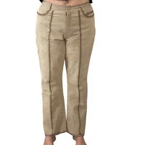 Vintage Suede Brown Leather Pants 12 Braided Trim western festival boho lined