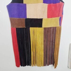 Vintage Suede Color Block Fringed Vest Art Colorful Festival Wear