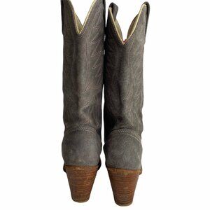 Dingo Cowboy Boots Womens 7M Suede Gray Leather Block Heel Red Stitching Western