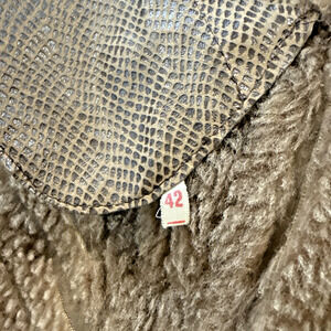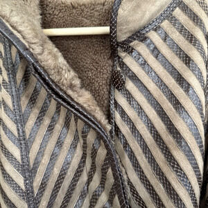 Vintage Suede & Embossed Leather Shearling Coat Tan Brown Boho Size 42 (M/L)