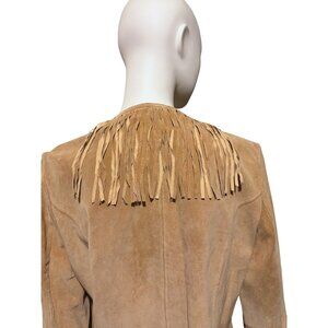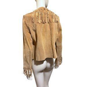 Vintage Suede Fringe Jacket L Tan Western Cowgirl Rodeo Boho 100% Leather