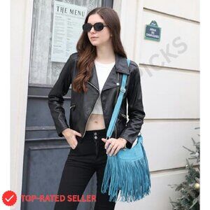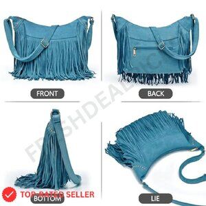 Vintage Suede Hobo Crossbody Bag Fringe Tassel Western Boho Chic
