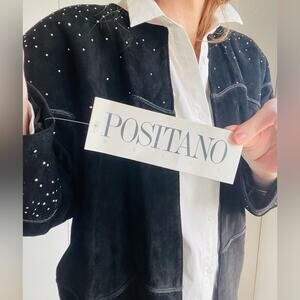 Vintage Suede Jacket/Coat Black Rhinestones Deadstock Y2K/90s Era Rocker Chic