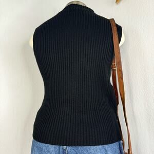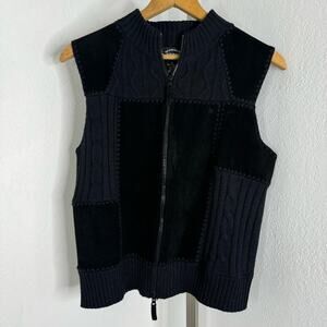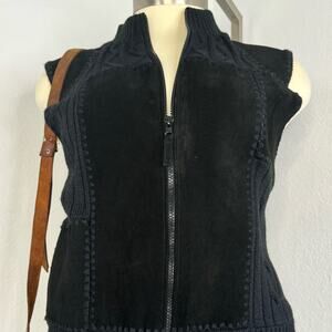 Vintage Suede Knit Patchwork ZipVest Black, Tag Size Medium fits more like a large