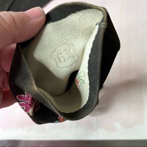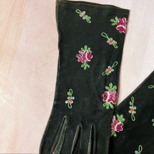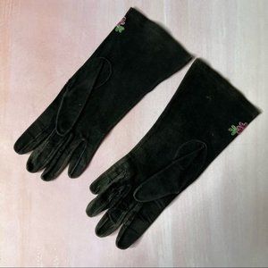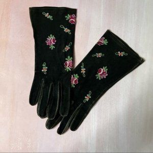 Vintage Suede Leather Embroidered Floral Rose Gloves