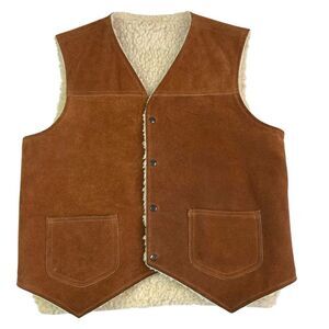Vintage Suede Leather Vest Mens M Sherpa Lined Snap Country Western Chore Cowboy