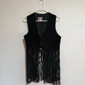 Vintage Suede Leather Vest with Long Fringe, Medium