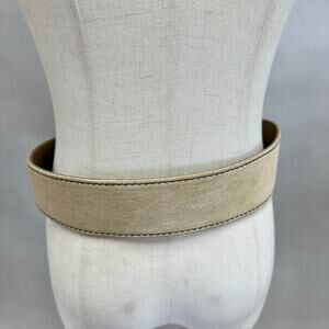 Vintage Italian Suede Leather Waist Belt w/ Gold Lion Medallion Statement L