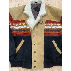 Vintage Suede Sherpa Jacket Coat Southwestern Pattern Mens Size Large WIB