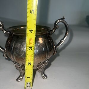 This vintage sugar bowl is a beautiful addition to any collection. Crafted from silver plate, it exudes elegance and timeless charm. The bowl is unmarked, adding to its mystery and allure.
