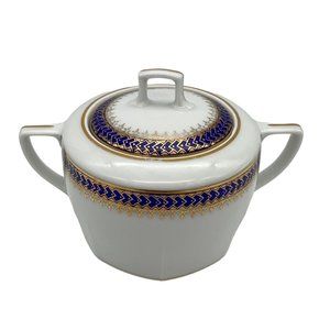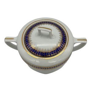 Vintage Sugar Bowl w/ Lid & Creamer Czechoslovakia 175G Blue and Gold Pattern