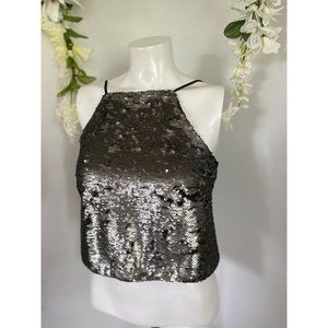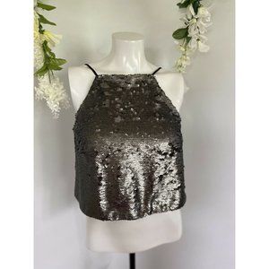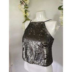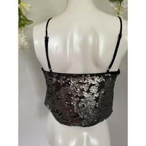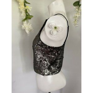 Vintage Sugar Lips Sequin Cropped Camisole Cami Tank Top Gray Womens Size Small