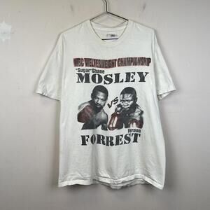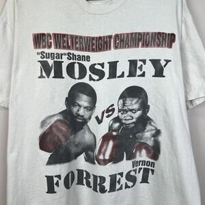 Step into the ring with this iconic vintage t-shirt commemorating the WBC Welterweight Championship bout between 'Sugar' Shane Mosley and Vernon Forrest. This collectible piece captures the spirit of boxing with vibrant graphics and bold text. Perfect for sports enthusiasts and fans of classic boxing memorabilia.