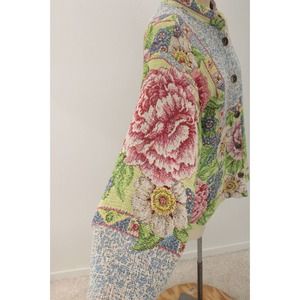 Vintage Sugar Street Weavers Womens Size Medium Floral Tapestry Jacket Button Up