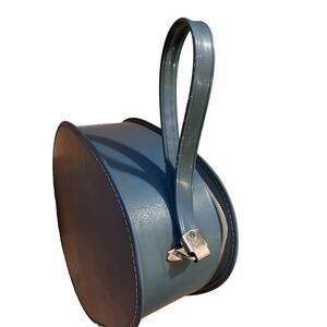 Vintage Suitcase Oval Train Case Carry On Bag Blue Mid-Century Egg Shape 1960's