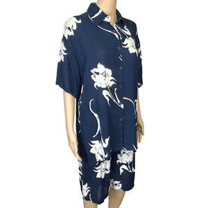 Vintage Summer Wine Womens L Hawaiian Floral Sheer Blouse Shorts Outfit Set