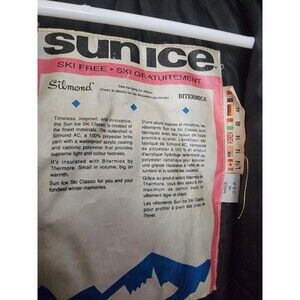 This vintage Sun Ice jacket is the perfect addition to your ski or winter wardrobe. The black and pink color combination is eye-catching and the polyester blend fabric is both durable and water-resistant. The jacket features a zip closure and zipped pockets, making it easy to store your essentials while you hit the slopes.