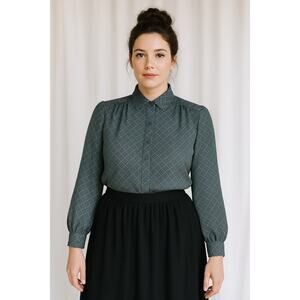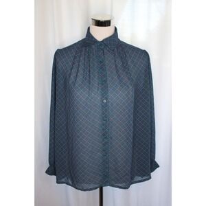 Vintage Sun King Ladies Sheer Button-Up Blouse Pleated Diamond Pattern Size 11, in good pre-owned condition, no stains nor holes, some washer wear (see photos).