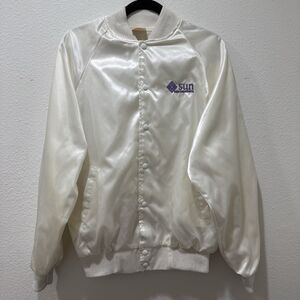 Vintage Sun Microsystems Oracle Satin Bomber Jacket Mens L Made In USA White