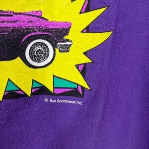 Vintage Sun Sportswear, USA made, Dreamin' state of mind, purple t-shirt, short sleeve, crew neckline, single stitch. Women's size large.