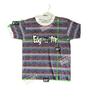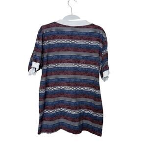 Vintage Sun Triangle Crewneck Tee Striped Geometric Blue S-M Y2k Made in the USA