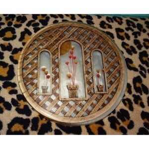 Vintage Sun Window dried flowers lattice Resin Trivet boho hot pad lucite retro
