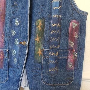 Vintage Sunbelt Hand Painted Southwestern Denim Vest Size Small One Button