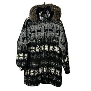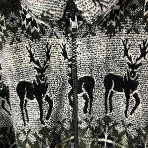 Vintage Sunbuster SZ L Full Zip Fleece Hooded Jacket USA All Over Graphic Animal