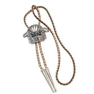 Vintage Suncrest Bolo Tie, Kachina Design, 34" Leather