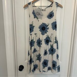 Vintage Sundress Floral Fairy Blue Sunflower Whimsigoth 90s Tank Size Medium