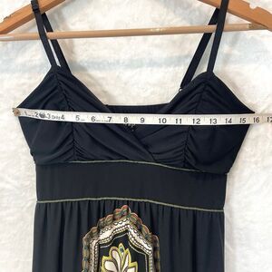 Vintage Sun Dress Maxi Black Slinky Sleeveless Snap Paisley Y2K Small