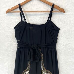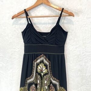 Vintage Sundress Maxi Black Slinky Sleeveless Snap Paisley Y2K Small
