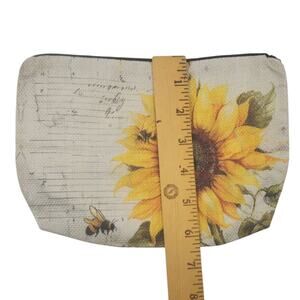 Sunflower Linen Cosmetic Bag Vintage Bee Script Botanical Makeup Organizer