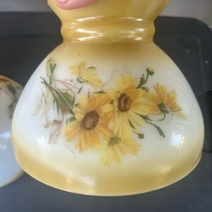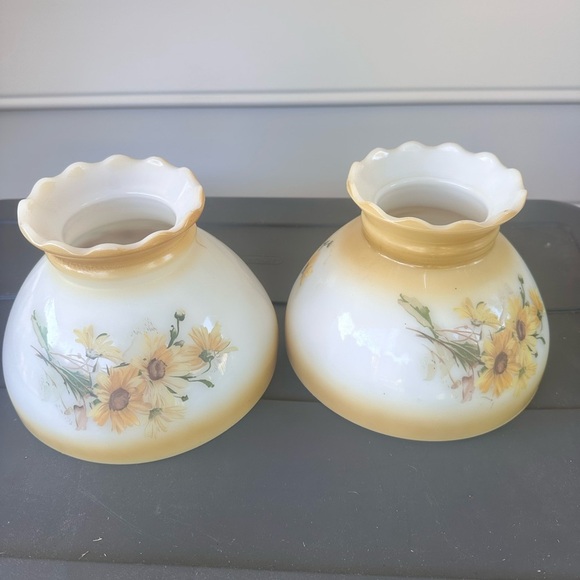 Enhance your home with this elegant pair of floral sunflower ceramic shades. The yellow and cream hues bring a warm, inviting feel to any room.