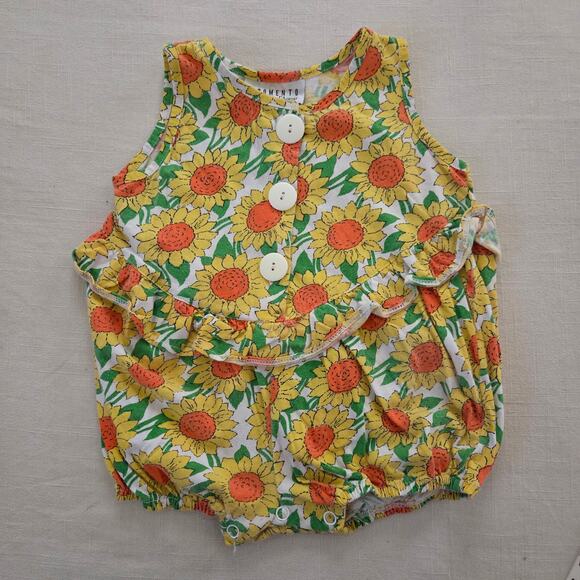 Vintage Sunflower Floral Bubble Romper 9-12 months
