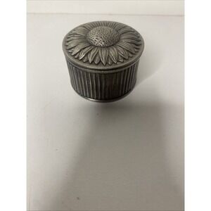 Vintage Sunflower Metal Trinket Jewelry Box w/ Red Velvet Lining 2"