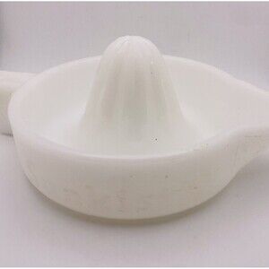 This vintage Sunkist juicer is a must-have for any collector of kitchen and home appliances. Made of high-quality white milk glass, this manual juicer is perfect for those who enjoy freshly squeezed lemon or orange juice. The Thatcher Glass design adds an elegant touch to any kitchen decor.
