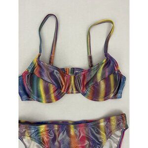Vintage Sunrays Women's 9 Bikini Rainbow Foil Padded Bra High Cut Bottoms