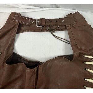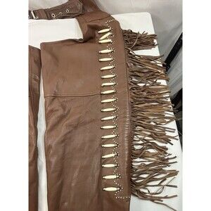 Vintage Sunrider Brown Fringe Beaded Chaps Size XXL Motorcycle Western Leather