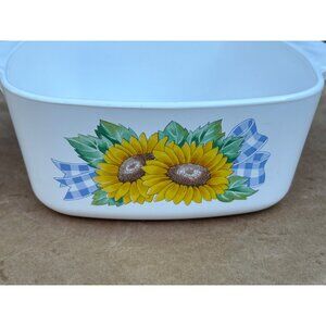 Vintage Sunsations Corning Ware Ceramic Baking Dish Sunflower Blue Gingham 1.5 L