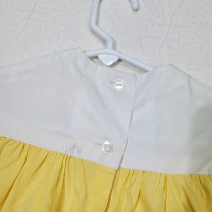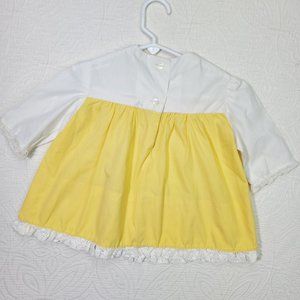 Vintage yellow & white dress with lace on chest, wrists, and hem. No tags and likely handmade but made well and is soft! Please see all photos for condition and measurements
