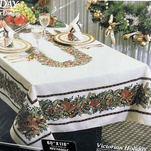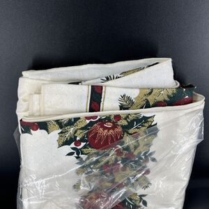 Vintage Sunweave Linen Corp. Christmas Holly Wreath Tablecloth 60” x 118”