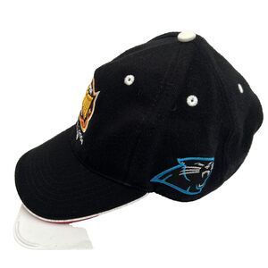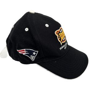 Show your team spirit with this vintage Super Bowl 38 hat. Featuring the iconic Carolina Panthers and Patriots logos, this adjustable baseball cap is perfect for any die-hard NFL fan. The black color makes it a stylish addition to any outfit.