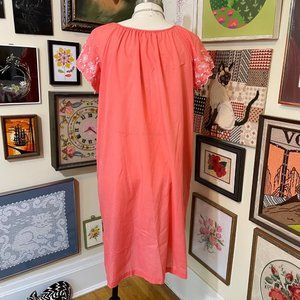 Vintage Super Comfy Orange Snap Housedress with White Embroidery and Pockets XL