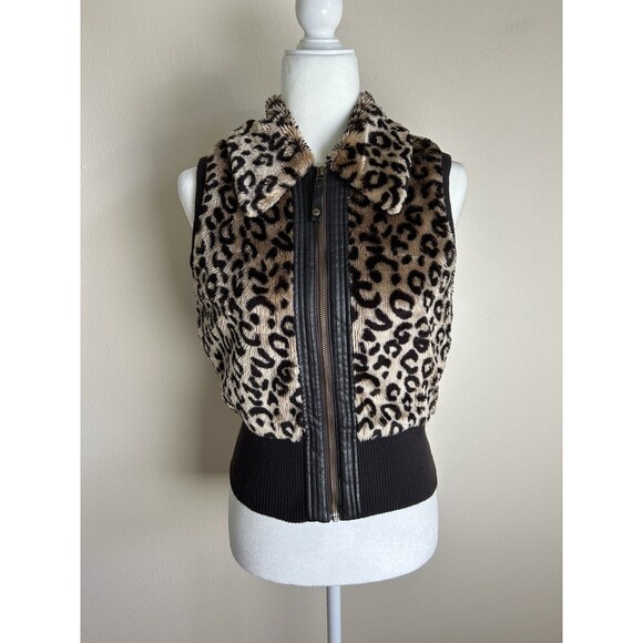 Vintage Super Lucky Cat Y2K Sweater Vest Burgundy Faux Fur Collar Mobwife Sz M