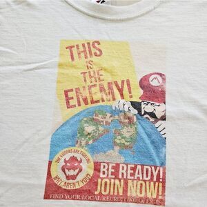 Vintage Super Mario Propaganda Bowser Villain Recruit Poster Cotton Tee Shirt XL