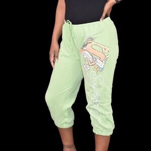 Vintage Supergirl Sweatpants Green Cropped Tattoo Capri Pants Joggers Y2K Small