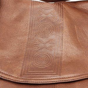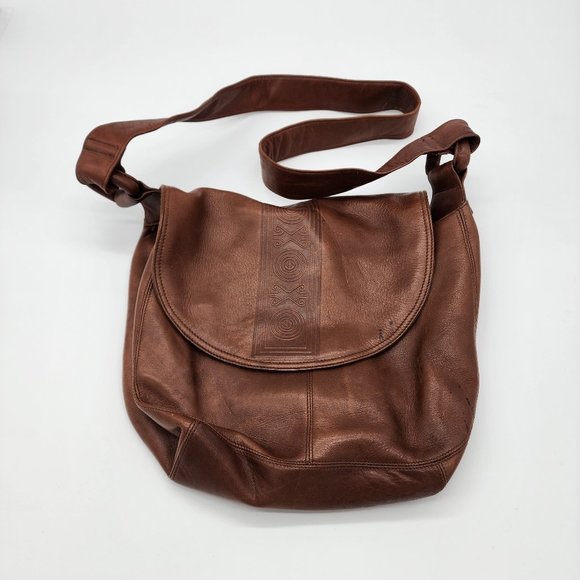 Vintage Sura Shoulder Crossbody Bag Purse Womens Brown Leather Flap Aztec Design