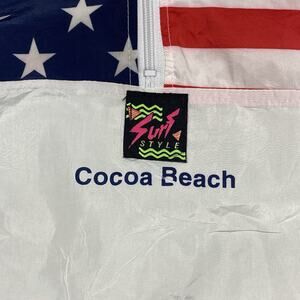 Vintage Surf Style Cocoa Beach USA Flag Half Zip Windbreaker Jacket XL Made USA