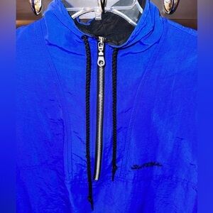 Vintage Surf Style Windbreaker Quarter Zip Longsleeve Blue Black Size One Size